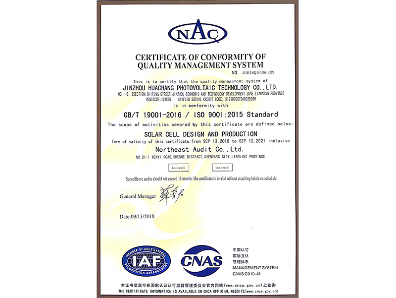 品質(zhì)管理體系認(rèn)証証明書(中國語)
