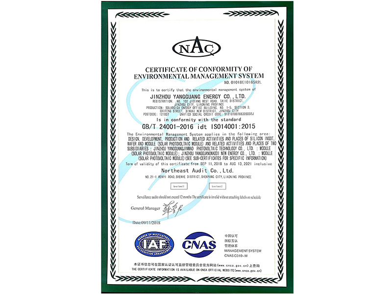 環(huán)境管理體系認(rèn)証証明書(英語)