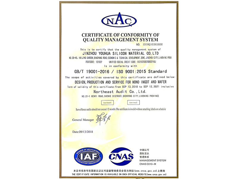 品質(zhì)管理體系認(rèn)証証明書(中國(guó)語(yǔ))