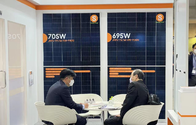 其中旗艦產(chǎn)品210N型HJT單玻半片組件功率最高可達(dá)705W,效率更是突破23.02%,可為日本市場帶來更加高效、高能的全新體驗,並擁有5-10倍的IEC標(biāo)準(zhǔn)檢測,以及優(yōu)異的抗PID性能;210N型TOPCON單玻半片組件采用66片設(shè)計,功率達(dá)到695W,作為成熟市場的優(yōu)質(zhì)之選,可提供12年質(zhì)量保證和30年發(fā)電效率保證。除此之外,其他4 款差異化的產(chǎn)品也獲得了眾多觀眾的青睞。