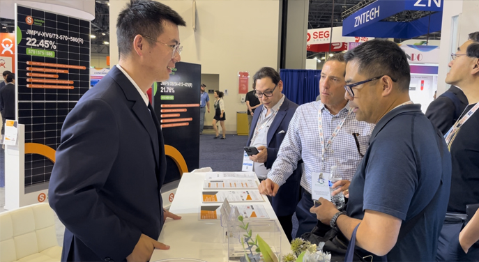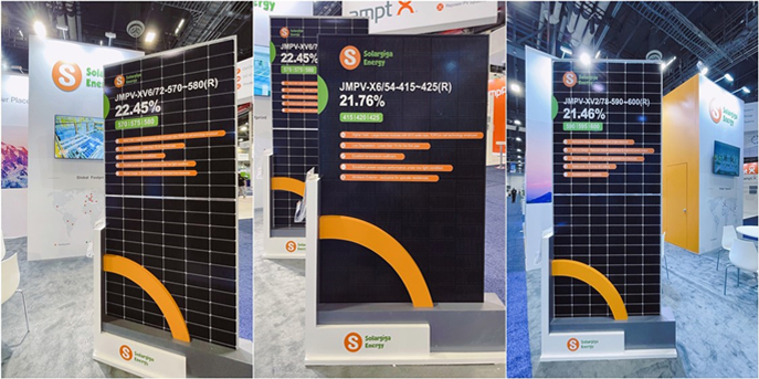 本屆美國展,陽光能源帶來的3款Giga系列組件產(chǎn)品,涵蓋72片雙玻、78片雙玻和54片單玻全黑組件,均采用182mm電池片設(shè)計。其中,我司展出的Giga-N系列72片雙玻組件吸引了不少現(xiàn)場觀眾的駐足了解。該款組件采用了行業(yè)領(lǐng)先的N型TOPCon電池技術(shù),最高量產(chǎn)轉(zhuǎn)換效率達(dá)22.45%,兼具高發(fā)電量、高雙面率、低溫度系數(shù)、低光衰率等多重優(yōu)勢,首年功率衰減≤1%,能夠有效保障終端用戶收益。同時,本次展出的3款Giga系列產(chǎn)品具備優(yōu)異的抗PID性能,且通過5-10倍IEC標(biāo)準(zhǔn)檢測,對于極限環(huán)境的耐受力更強,能夠滿足北美市場大型地面電站、高端戶用等全場景需求。